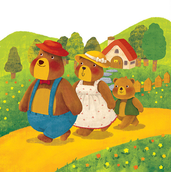 Bear family illustration from Goldilocks And Three Bears, Hansol Education